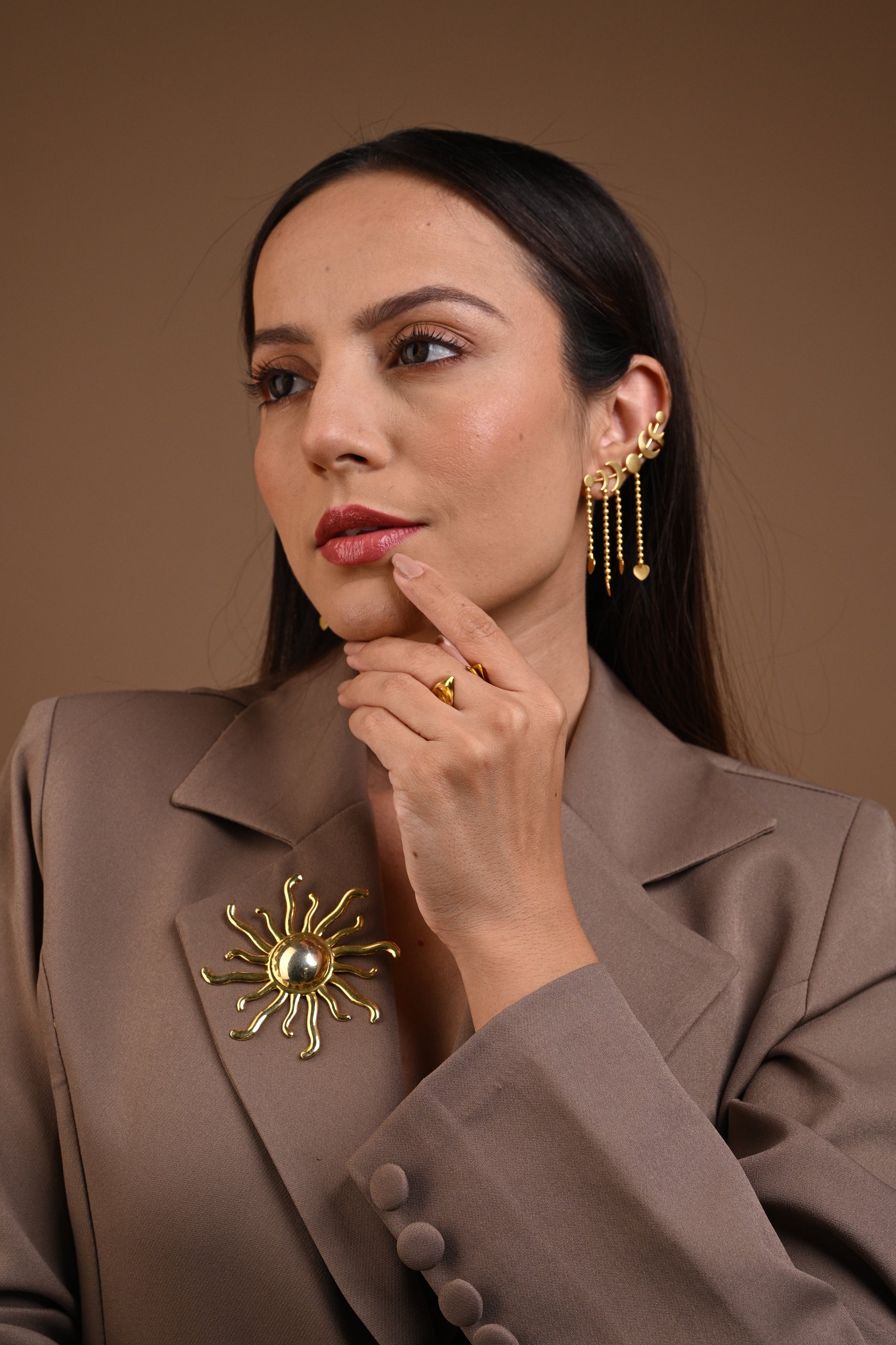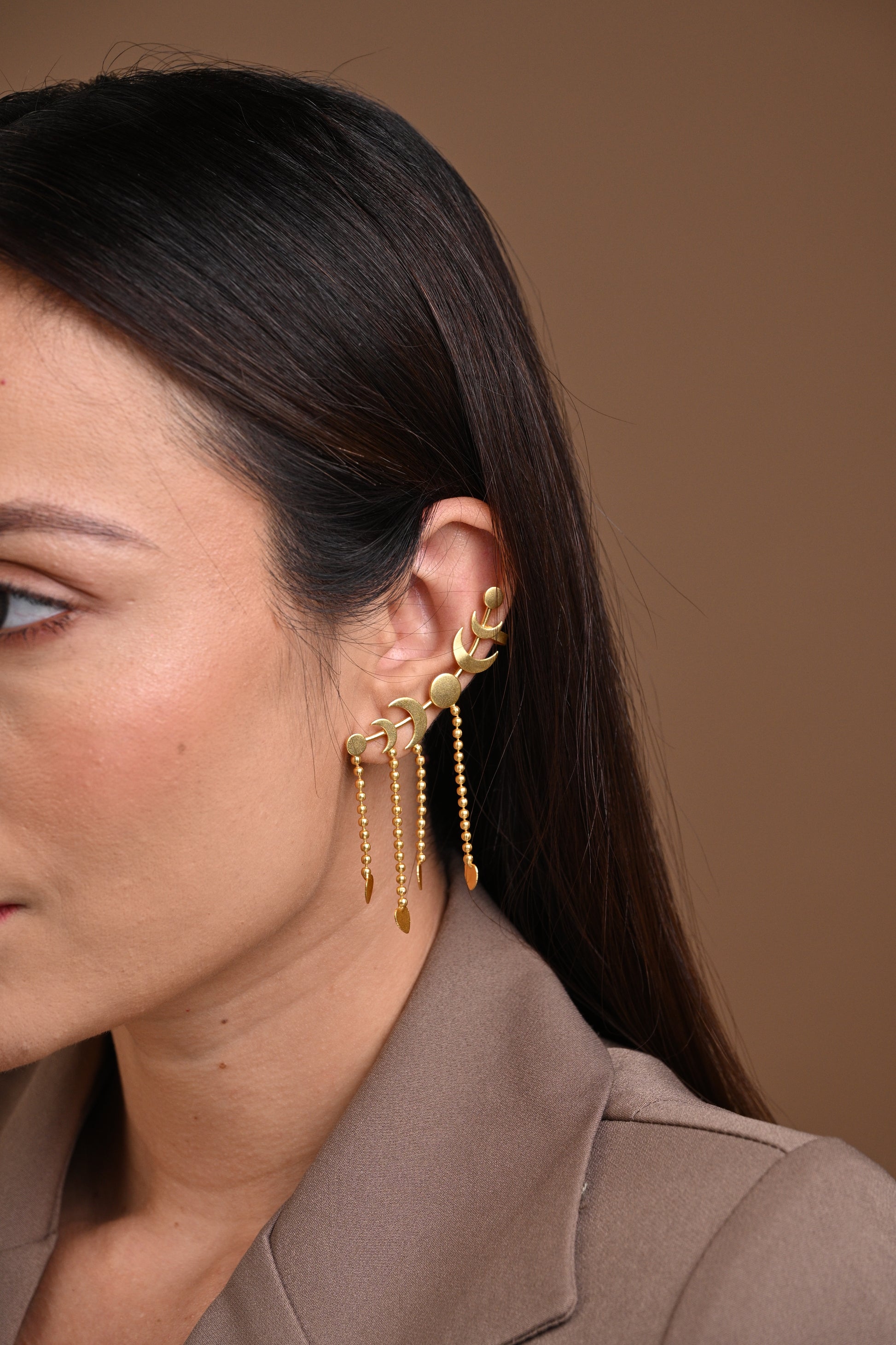 Add a touch of bold elegance with our Chand Sitara Ear Cuff a statement piece that wraps around the ear with cascading charm. Featuring crescent shaped motifs and delicate dangling chains, this ear cuff is designed to elevate any outfit